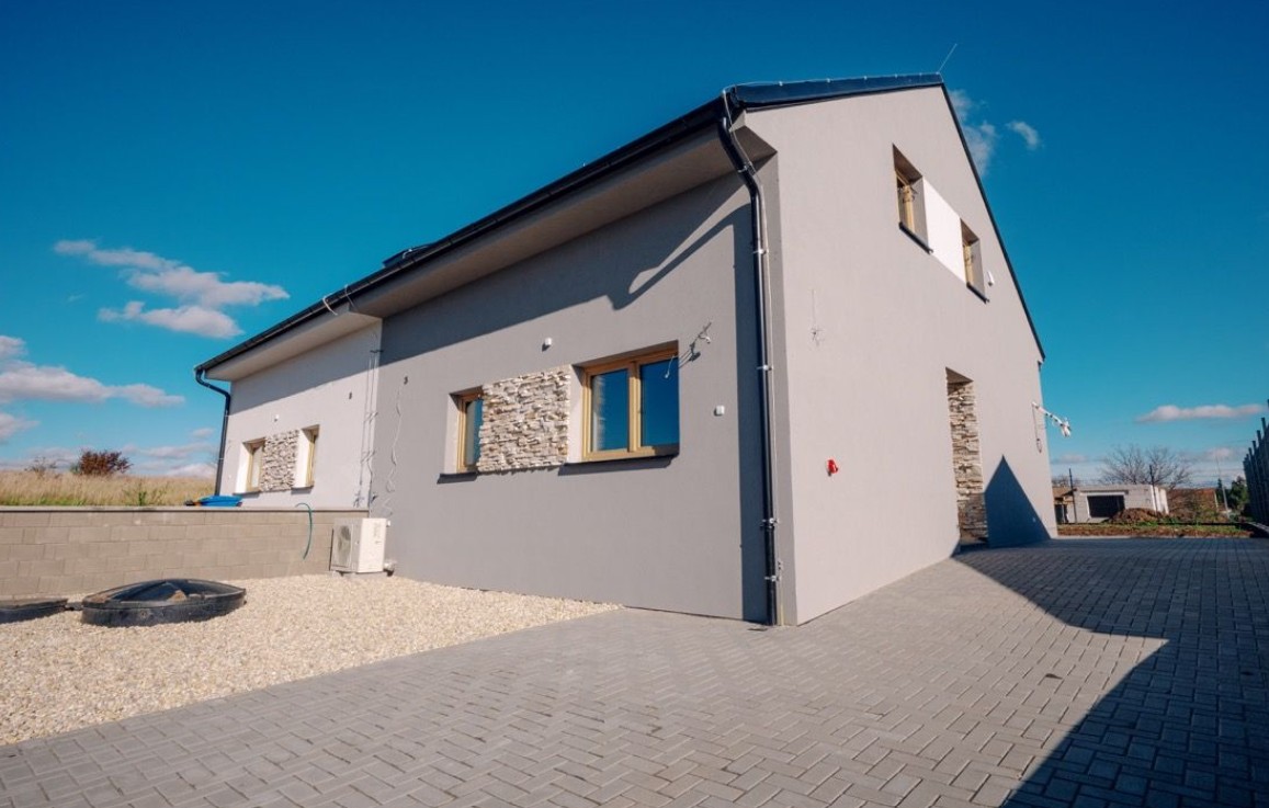 Tento rodinný dům jsme úspěšně dokončili v únoru 2026. Zákazník u nás využil možnosti dodání kompletně na klíč. Dům vyniká mimořádnou energetickou úsporností díky teplenému čerpadlu, podlahovému vytápění a krbové vložce.